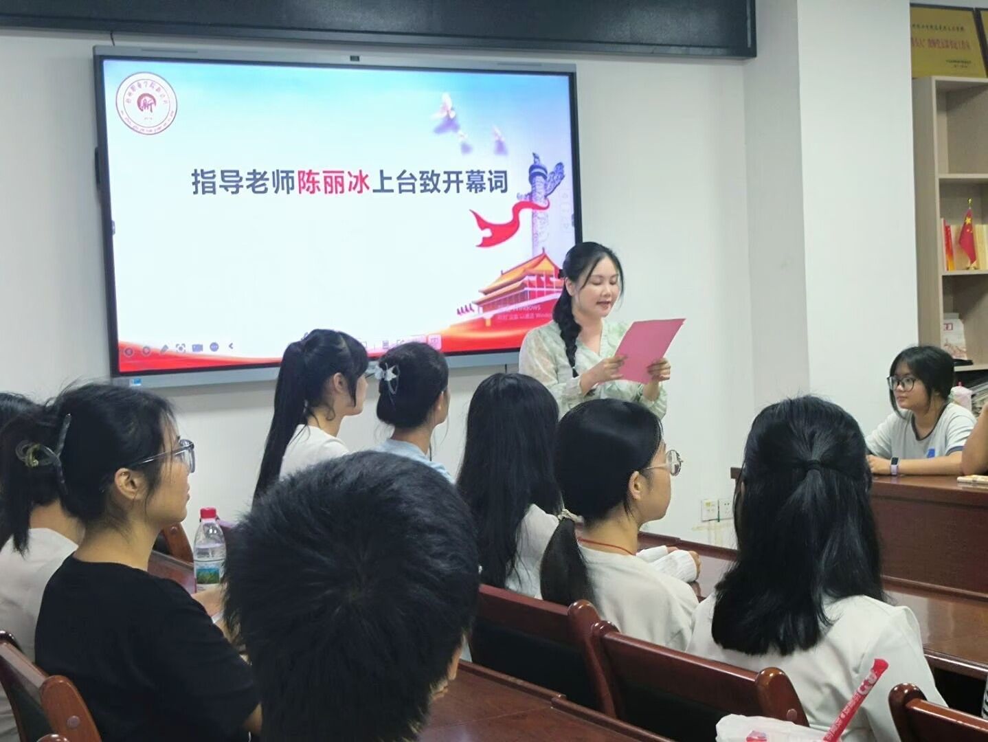 活动由新语社指导教师陈丽冰主持并致开幕词,党员教师代表覃贤发言,勉励新成员在社团实践中锻炼成长,积极传播马克思主义真理,讲好新时代青年话语。