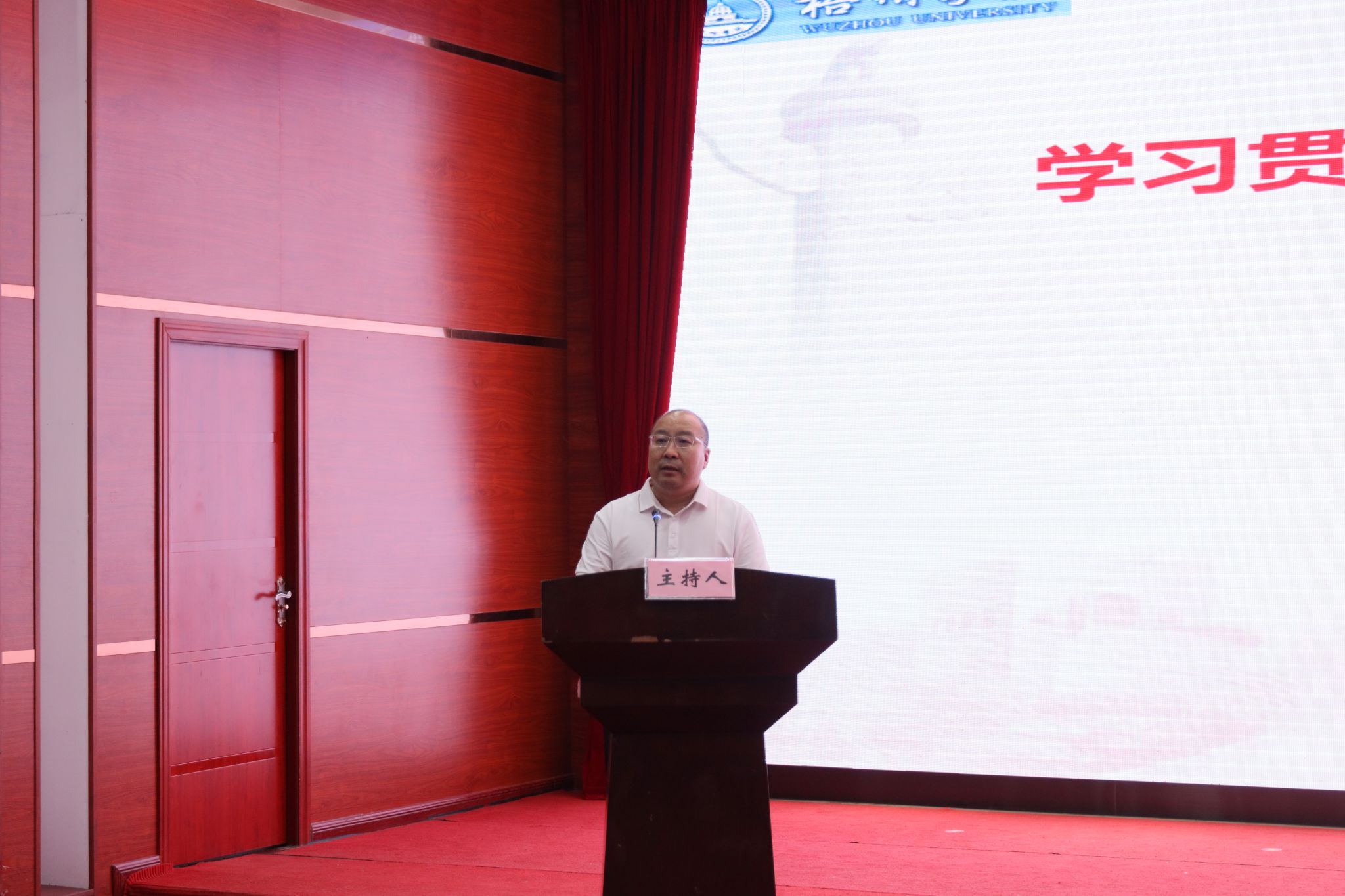 时伟书记在主持讲话中指出,学校党委理论学习中心组要发挥示范作用,先学一步、学深一层;各级领导干部要带头读原著、学原文、悟原理;各基层党支部要通过“三会一课”、主题党日、主题班会等形式推进理论学习,确保党的创新理论入脑入心。希望全校党员干部要牢记为党育人、为国育才的初心使命,立足岗位担当作为,为提高学校教学质量、办好人民满意教育做出自己应有的贡献。