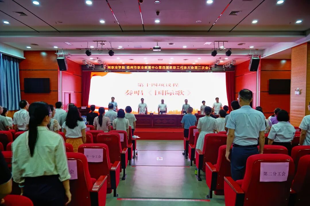 7月10日,梧州职业学院(梧州市职业教育中心)第四届教职工代表大会第二次会议在图书馆报告厅隆重召开。学校领导班子、教职工代表共 124人参加大会,会议由学院副院长、市职教中心副主任梁恩主持。