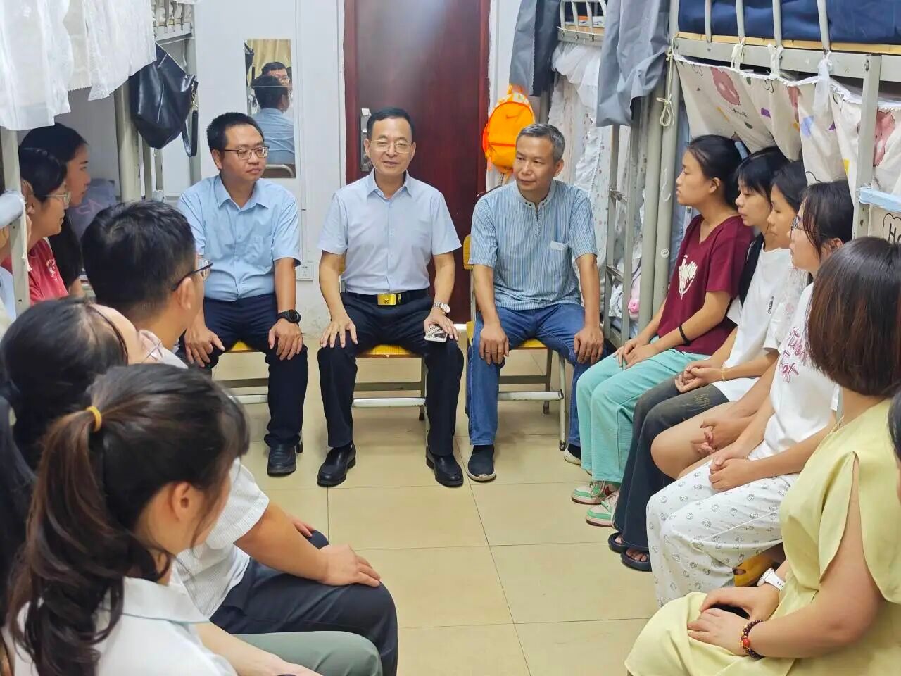 9月11日下午,学院领导时伟、陈森英、梁恩、姚冰、李伟分别走访新生宿舍,慰问2025级新同学。各教学单位领导、新生班主任陪同走访。