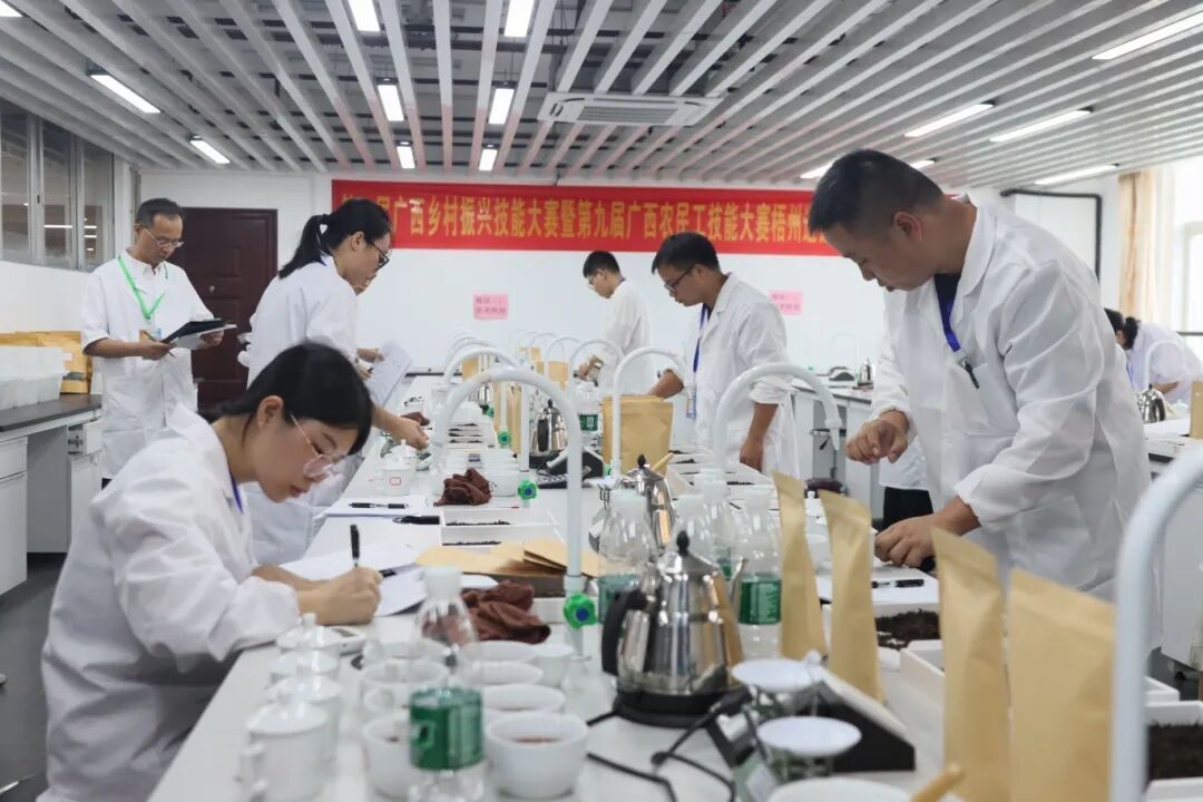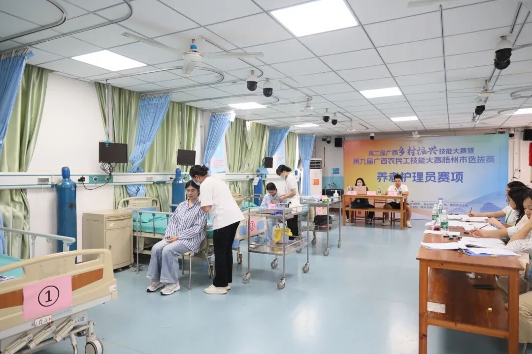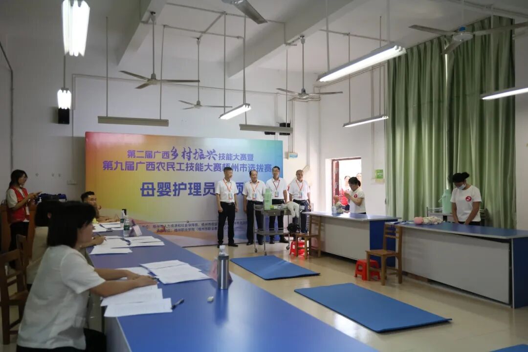 此次农民工技能大赛梧州市选拔赛的竞赛职业(工种)包括医疗护理员、养老护理员、母婴护理员、茶叶加工工、茶艺师、评茶员共6个比赛项目,100余名选手在六个场地分别同时进行比赛。