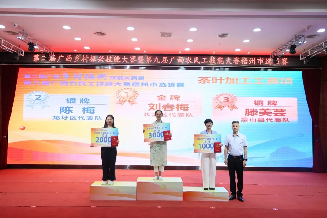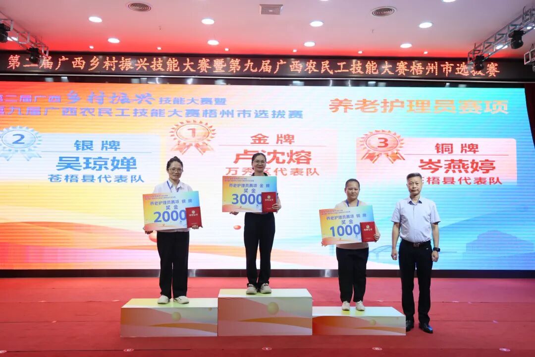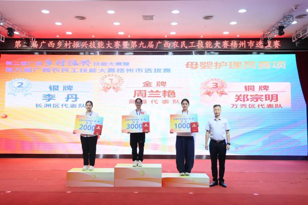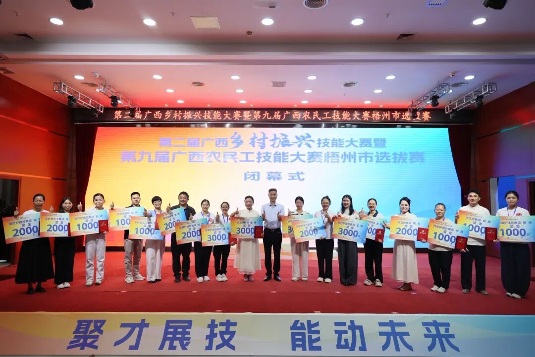 颁奖现场此次选拔赛为农民工搭建技能展示平台,推动 “培训 — 竞赛 — 就业” 联动,助力乡村振兴和地方产业发展,以技能竞赛实效激发劳动者投身梧州经济社会建设的动力。