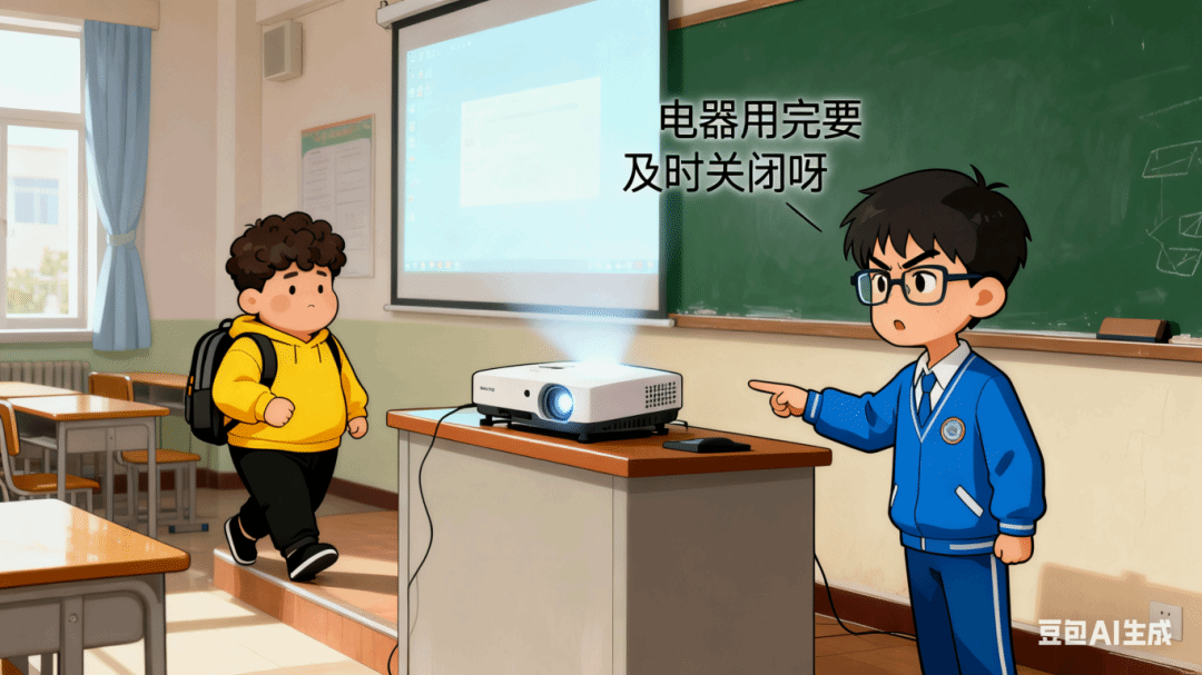 一、教室无人使用的电器及时关闭