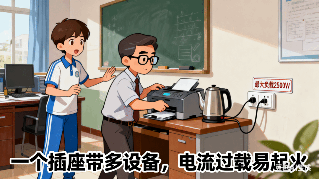 八、办公室避免超负荷用电,不要多个设备共用一个插座
