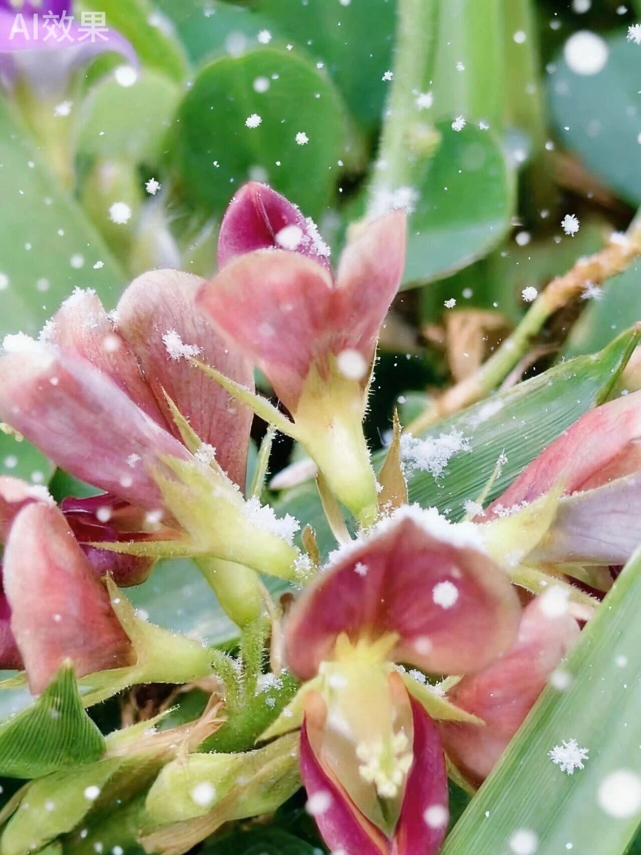 绿叶结霜花草木卸夏装藏起喧嚣静待来年绽放