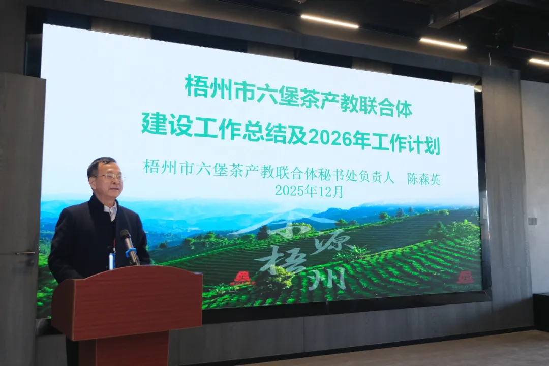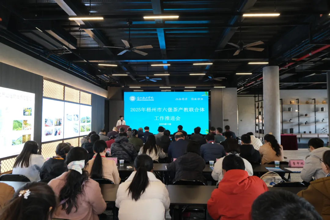12月26日,2025年梧州市六堡茶产教联合体工作推进会在黑石六堡茶源博园召开。