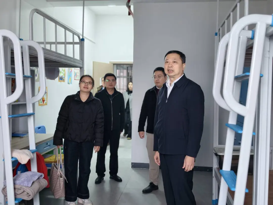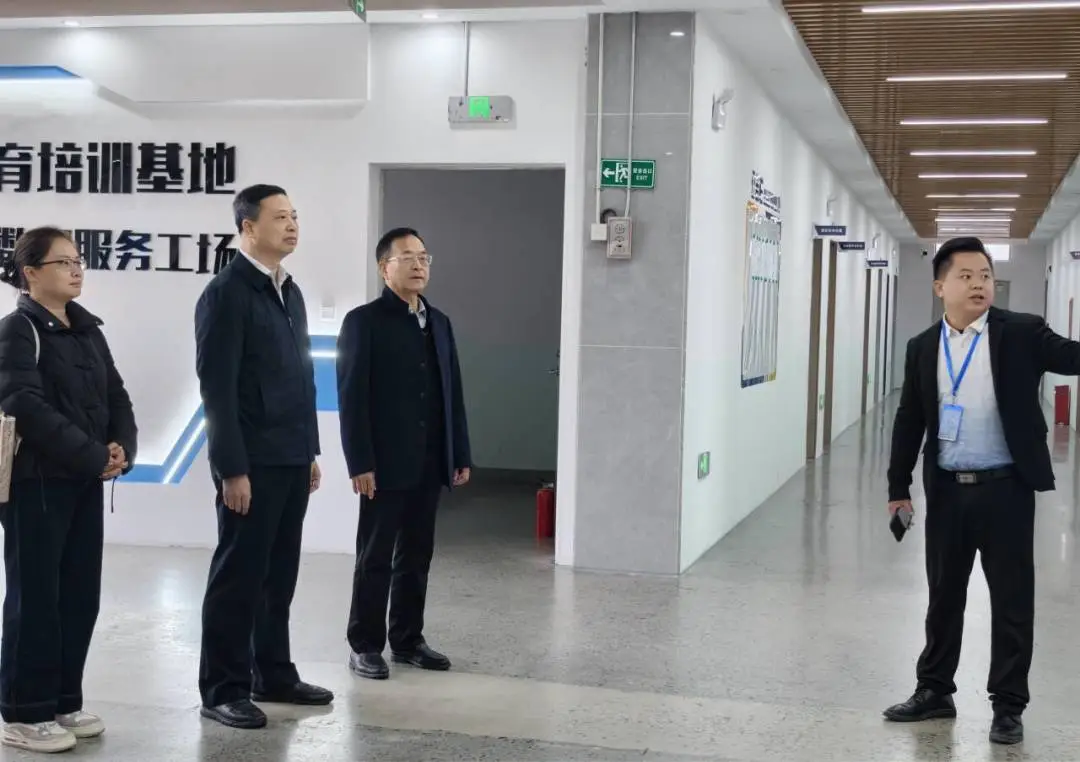 2025年12月25日,梧州市政协主席黄振饶一行三人莅临梧州职业学院数智专业人才产教融合培育培训基地,开展专题调研。调研期间,黄振饶主席一行先后实地察看了数智基地宿舍、实训场地、运动场馆等场所,详细了解学院人工智能领域人才培养模式、课程体系建设,以及与企业深度合作开展产学研协同创新项目的推进情况。