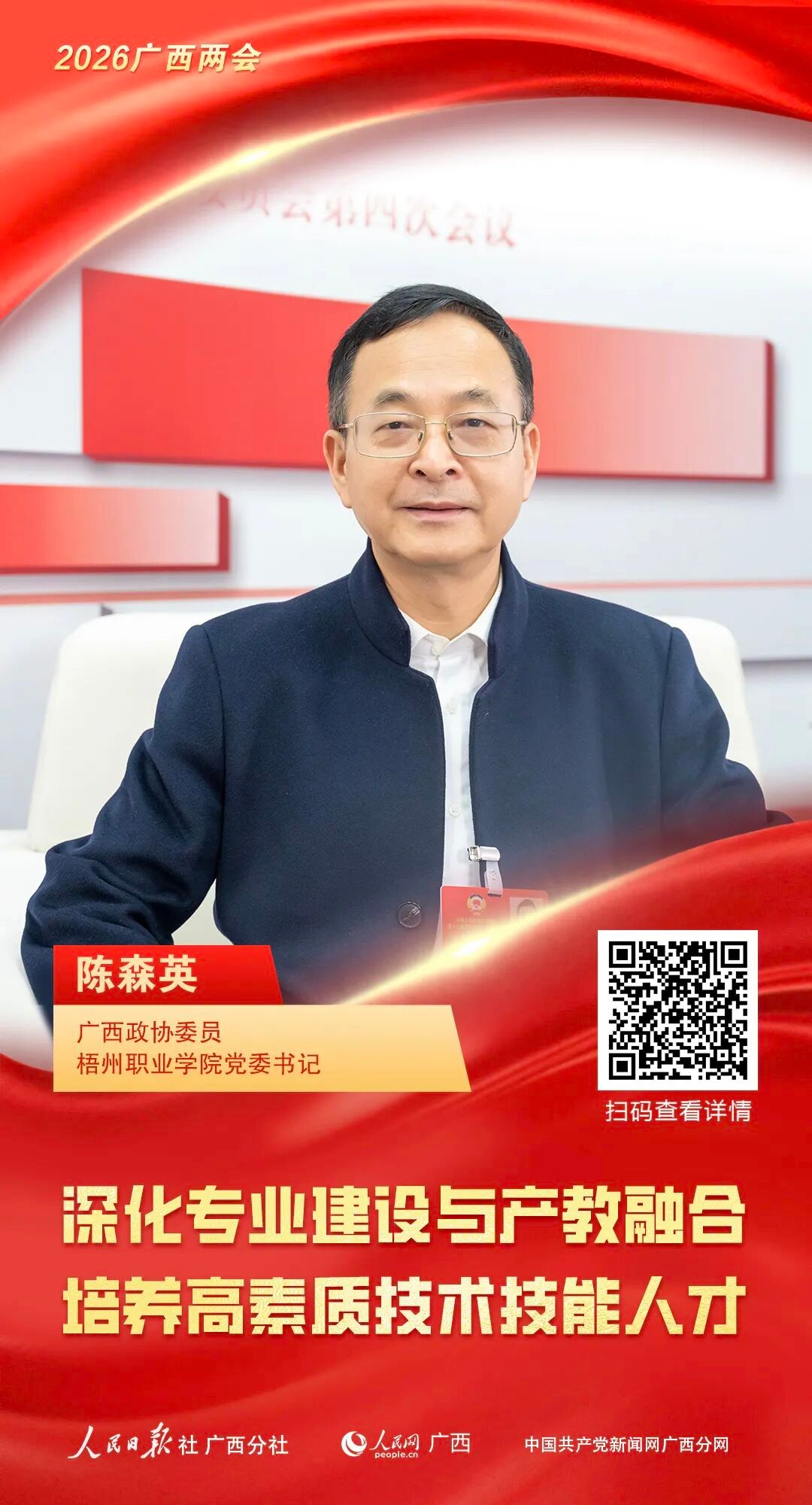 陈森英委员表示,未来,梧州职业学院将继续深化专业建设与产教融合,进一步扩建数智人才培养基地,引入5G+AR远程实训等先进技术,积极探索与东盟院校的技术资源共享与合作,为广西打造中国—东盟人工智能国际合作高地,持续培养和输送更多“下得去、留得住、用得上”的高素质技术技能人才。