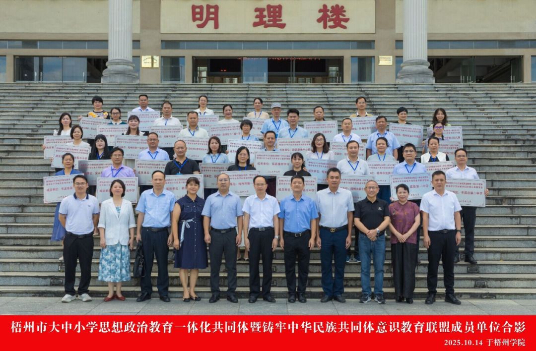 10月14日至17日,由我校与梧州学院、梧州市教育局共同主办的2025年全区大中小学思想政治教育一体化共同体暨铸牢中华民族共同体意识教育联盟梧州分片区动员部署暨业务专题培训会在梧州顺利召开。