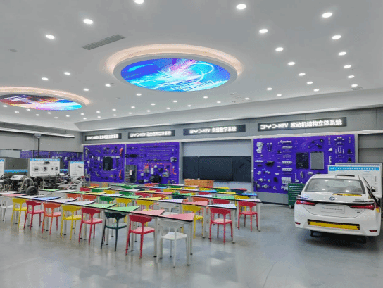 核心实训区面积达1102㎡,设有4个专业实训室,设备总值464万元,重点围绕“三电”系统、底盘技术、整车维修及营销服务开展系统化实训,全面对接行业最新技术与发展趋势。