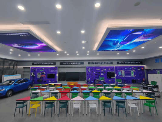 面积160㎡,设备总值60万元。模拟真实4S店场景,设有产品展示区、充电服务区等功能区域,支持客户接待、销售谈判、售后服务等全流程情景演练,系统提升学生营销服务与客户沟通能力