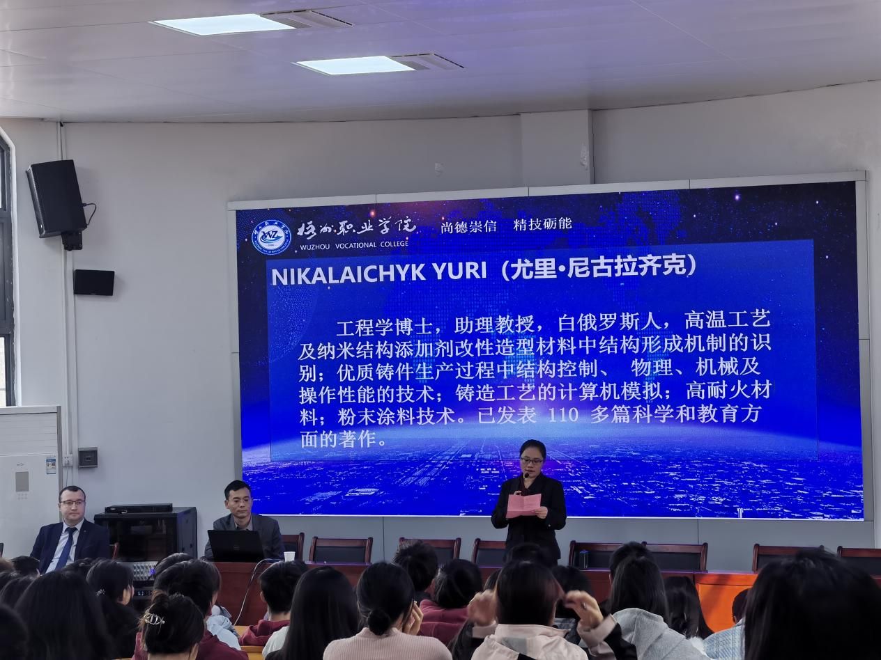 讲座由黄湘寒副院长主持,对尤里·尼古拉齐克副校长一行的莅临表示欢迎并介绍双方出席人员。尤里·尼古拉齐克副校长介绍了白俄罗斯国立技术大学的概况及其对于纳米材料航空技术新产品的开发研究进展,讲座现场同学们与尤里副校长积极互动交流,气氛热烈。