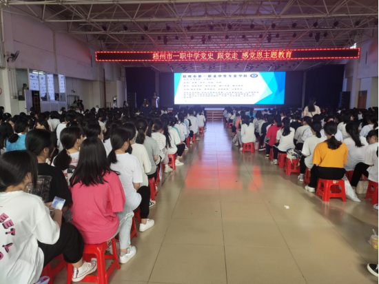 2021年5月26日,梧州市第一职业中等专业学校在职教周活动中,以庆祝中国共产党成立100 周年为契机,对学生加强党史学习教育,利用班会课指导学生从党的百年伟大奋斗历程中汲取前进的力量,引导学生感党恩、跟党走,坚决拥护以习近平同志为核心的党中央,永远跟党走。