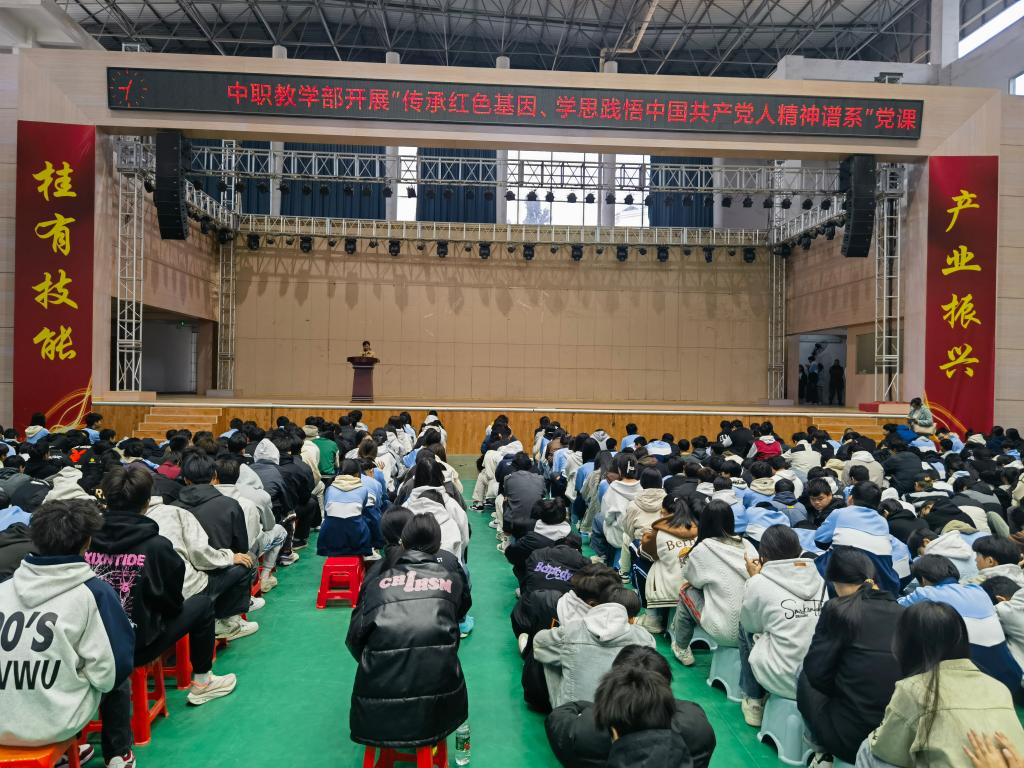 2024年12月9日上午,在风雨操场内开展了一场特别的党课。此次活动的主题为“传承红色基因、学思践悟中国共产党人精神谱系”,由中职教学部党委书记黄燕群主讲。深刻领悟中国共产党人的精神谱系,汲取红色力量,对于教育引导广大师生投身强国建设、民族复兴伟业具有深远的意义。