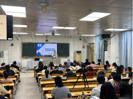 陆教授有丰富教师教学能力大赛评委的经验。本次培训,陆教授从认识教学能力大赛、解读课堂教学、熟悉备赛技巧等三个方面,对比赛相关事项做了说明。从教案的设计、课程思政的体现、教学实施报告的撰写、佐证材料的格式及视频录制的具体要求等方面对教师进行培训。