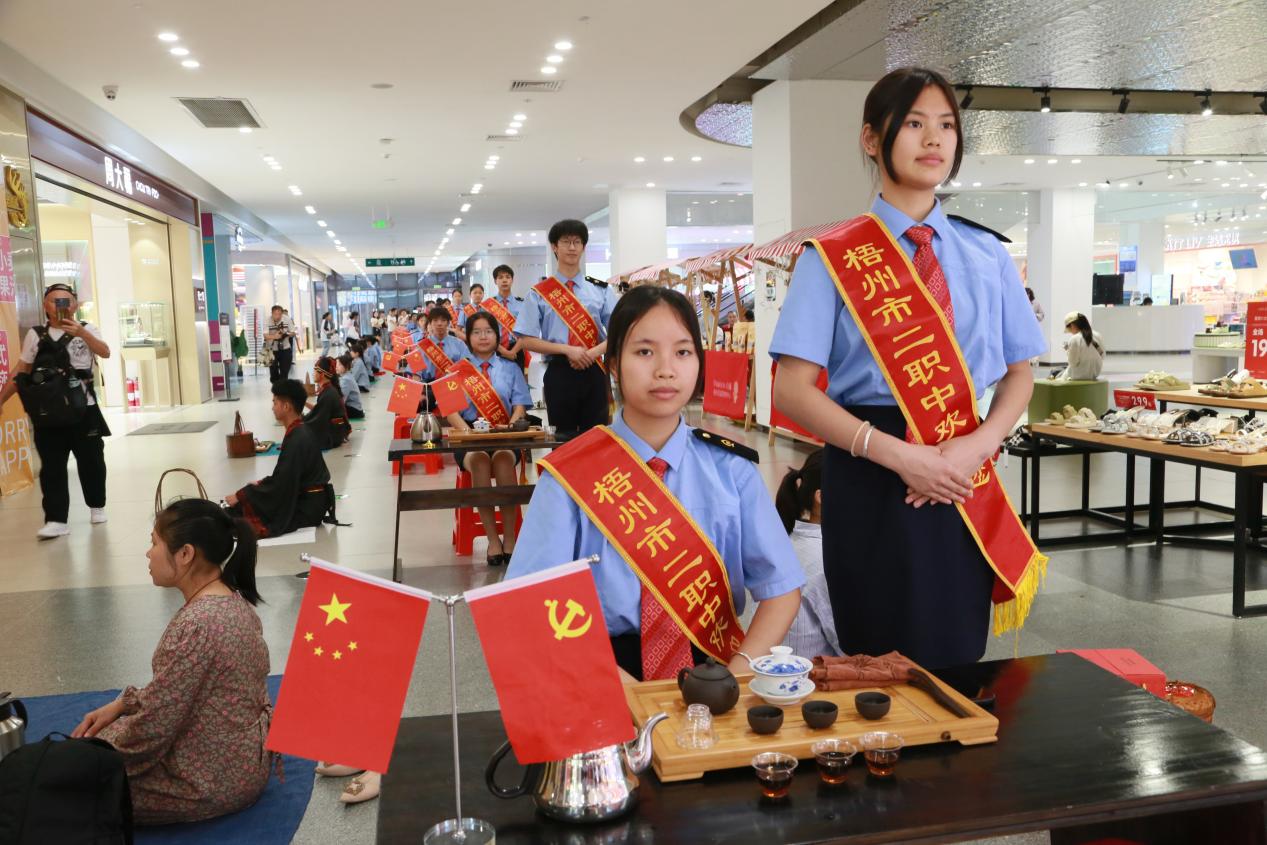 5月21日,第五个“国际茶日”系列庆祝活动在梧州市三祺城百盛商场隆重举行。梧州市第二职业中等专业学校30多名师生受邀参与了本次活动。