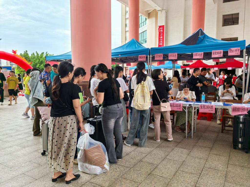 8月22日,中职教学部迎来了2000多名满怀憧憬的2024级新生,这些新同学们在家长的陪伴下,踏入了美丽的校园,准备开启他们人生梦想的新赛道和新征程。迎接新生的过程中,学院(中心)领导及我部领导到班级报到点进行亲切的问候。