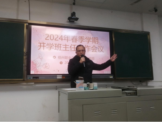 为落实新学期开学学生工作部署,确保新学期学生管理工作有序开展,2月27日上午9时,梧州职业学院中职教学部召开了2024年春季学期开学班主任工作会议。