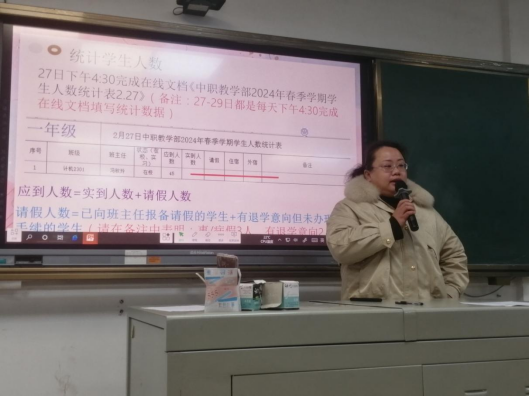 学生科邓丽萍副科长布置学生管理工作