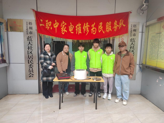 为践行雷锋精神,做好社区居民服务工作,倡导“奉献、友爱、互助、进步”的志愿服务精神,3月9日上午党员教师与“小家电维修为民服务队”师生前往蓝天港湾社区开展志愿服务活动。参与服务的学生纷纷表示:今天可以用在学校学到的维修知识帮助身边的人,虽然累但很有意义,也很开心!希望今后也能通过实际行动带动更多的人加入到志愿服务的行列中来。