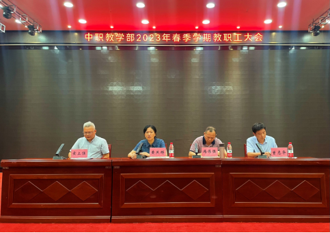 7月4日下午,中职教学部在图书馆报告厅召开2023年春季学期期末教职工大会,教学部党委副书记(主持工作)、部长黄燕群,党委副书记冯伟强,副部长黄上强,副部长曾志华以及全体教职工参加大会。会议由副部长黄上强主持。