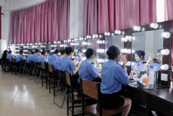 高铁学生正在参加党主题活动 高铁学生正在学习化妆